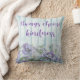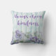 Kissen mit blauen und lila Farbtönen und Blumendesign. IMMER WÄHLEN KINDNESS ist auf dem Imitat Holzzaun in dekorativer Schrift geschrieben. Ideal für ein Bett, einen Stuhl oder ein Sofa - und in der Regel auch für ein paar Personen