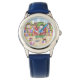 Kinderuhr aus Edelstahl mit blauem Lederarmband
