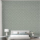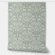 This soft sage green and cream hand-drawn scalloped pattern features an intricate, elegant, botanical pattern. The style channels an Arts & Crafts / Craftsman aesthetic, but its classic styling means it will suit a variety of settings and decor styles. Repeats twice across the width of the roll, with each scallop measuring 6 inches across.
