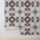Intricate Sharp Black Red Motifs on Light Gray Tapete