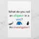 Will du, einen lustigen Witz zu hören? Wie nennst du einen Alligator in einer Weste? Ein in-vest-igator!