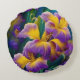Iris Floral Lila und goldblaugrüne Blätter Rundes Kissen