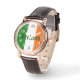 Braun Leder perfekte quadratische eWatch Uhr mit einem Bild, das Irlands Flagge darstellt. Die grüne Farbe auf der Flagge repräsentiert die Einheimischen Irlands (die meist römisch-katholisch sind). Die orangefarbene Farbe repräsentiert die britischen Anhänger William von Orange, der sich im 17. Jahrhundert in Nordirland niederließ (von denen die meisten protestantisch sind). Das Weiße in der Mitte der Fahne repräsentiert den Frieden zwischen diesen beiden Gruppen von Menschen. Optionale Uhr Die gesamte Kollektion St. Patrick’s Day Wrist Watch finden Sie im Bereich HOLIDAYS.