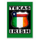 Texas-Iren entwerfen, im Stil eines coolen amerikanischen Straßenwegzeichens. Die Text Texas-Iren sind entlang der Spitze und der Unterseite, mit der Flagge des Staat von Texas und der Flagge der Republiks Irland innerhalb des Wegzeichens. Groß für Texans des irischen Abfalls und für Exklapse im einzigen Stern-Staat.