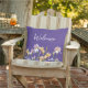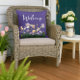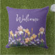Die Dekoration der Veranda oder des Innenhofs wird durch das Kissen im blumengeschmückten Außenbereich betont. Dieses Kissen bietet eine Aquarellillustrierung von schönen lila, gelben und rosa Reisen auf einem lila Hintergrund. Sie können dieses Kissen bearbeiten, um Ihr Foto oder Text hinzuzufügen. Ein Kissen im Freien wäre ein nachdenkliches Geschenk für die Hauswärmung.