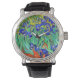 Uhr, Vintage Männeruhr mit schwarzem Lederarmband