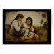 Zwei kleine Mädchen sitzen zusammen im Gras. Der Ältere von beiden spielt eine Zinnpfeife. Vintages irisches Kunstwerk aus dem 19. Jahrhundert.
