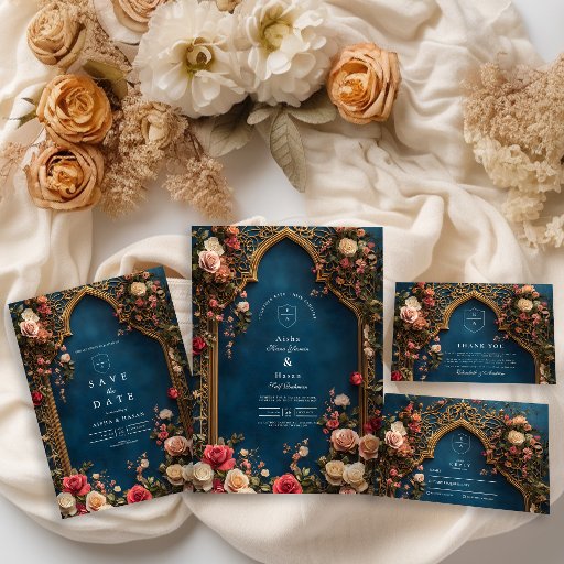 Erzählen Sie Ihren besonderen Tag im Stil mit unserer Navy Blue Floral Islamic Wedding Save the Date. Mit einem marineblauen Hintergrund mit zarten Blumenmustern und glänzenden Gold- oder Silberakzenten strahlt diese Karte zeitlose Eleganz und Set für Ihre anspruchsvolle islamische Hochzeitsfeier. Save the Date, um sowohl Ihre Traditionen als auch den modernen Stil zu respektieren, umfasst dieses Hotel inspirierte Details wie arabische Motive, geometrische Muster oder einen subtilen Halbmond und Stern. Die saubere und anmutige Typografie hebt Ihre Namen und das Hochzeitstermin hervor und stellt sicher, dass der Fokus auf die Details liegt, die am wichtigsten sind. Diese Save the Date passende Kombination für Ihren Hochzeitsort oder eine personalisierte Nachricht verbindet sich hervorragend mit passenden Einladungen, RSVP-Karten und anderen Hochzeitsartikeln. Es ist der perfekte Weg, um sicherzustellen, dass Ihre Lieben ihren Kalender für einen Tag mit Liebe, Segnungen und hochgeliebten Erinnerungen markieren. Set den Ton für deinen großen Tag mit einem Save the Date, das genauso bedeutsam und schön ist wie deine Liebe.