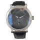 Uhr, Vintage Männeruhr mit schwarzem Lederarmband