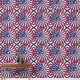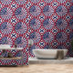 Isometric USA Flag Pattern Wallpaper & Vorhang Dieses einzigartige Tapete- und Vorhangdesign zeichnet sich durch ein auffälliges isometrisches Muster der US-Flagge aus. Die Fahne wird durch blaue Sterne auf weißem Hintergrund dargestellt, die sich in einem roten, kreisförmigen Rahmen befinden. Die Sterne sind in einem fesselnden Radialmuster angeordnet, wobei der zentrale Bereich das ikonisch-blaue Feld zeigt. Dieses Design fügt jedem Raum eine Touch des modernen geometrischen Flairs hinzu und feiert gleichzeitig den amerikanischen Patriotismus.