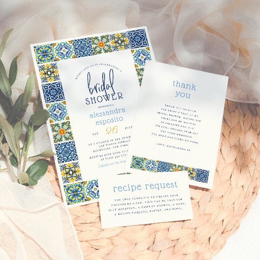 Mit dieser mediterranen Duscheinladung laden Sie Familie und Freunde ein, die zukünftige Braut zu feiern! Eine klassische Kombination aus Zitronen und blauen Fliesen. Dieser Stil ist in ganz Italien beliebt, wie etwa in Positano an der Amalfiküste, Toskana, Sizilien, und den Inseln, sowie in Gegenden von Griechenland, Portugal und Spanien. Die Vorderseite dieser Karten ist mit einem Rahmen aus verschiedenen italienischen Fliesen dekoriert, die alle in marineblau und gelb gehalten sind. Der Text erscheint in schicker, handgeschriebener Skriptkalligraphie und eleganter Serifentypografie. Der Name der Braut erscheint in hellblau. Wir haben uns entschieden, den Namen in Kleinbuchstaben zu zeigen, aber das kann leicht geändert werden. Um den Veranstaltungsnamen und die UAWG etwas größer als die Erholung der Duschdetails zu bekommen, benutzten wir alle Kappen. Ideal für einen Frühlings- oder Sommeraufenthalt. Ein Zitrusmotiv ist ideal für Cocktails (wie Mimosen und Zitronenpfropfen), Erfrischungen, Vorführungen und botanische Dekoration oder einfach nur, um Ihre Veranstaltung mit einer sonnigen Touch zu versehen! Auf der Kartenrückseite ist ein hübsches Muster von Aquarelllemonen, Blätter und Blüten der Blume zu sehen. Klicken Sie auf "Diese Vorlage personalisieren" und bearbeiten Sie den Text in den Vorlagenfeldern, um mit dem Ändern von Namen und Ereignisdetails zu beginnen. Um auf die fortschrittlicheren Bearbeitungstools zuzugreifen, scrollen Sie nach unten zu "Klicken Sie, um weitere Anpassungen vorzunehmen". Sobald Sie sich in Zazzle's Design-Tool, können Sie bearbeiten Schriftart, Platzierung, Farbe, Größen, und mehr! Beachten Sie nur, dass "bridal" nicht bearbeitet werden kann, wie es handgeschrieben wurde. Wenn Sie mir durch den Knopf unten, werde ich glücklich sein, etwas Anderes für Sie zu schreiben, an etwas gemeinsam zu arbeiten, oder beantworten Sie alle Fragen! Bitte beachten Sie, dass die Einladungen gedruckt und an Sie verschickt werden, genau wie Sie sie auf Ihrem Bildschirm sehen, und ich kann nicht ändern eine bestehende Bestellung, so kontaktieren Sie mich vor dem Kauf, wenn Sie möchten, dass etwas geändert werden!