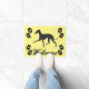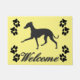 Italienische Greyhound Silhouette mit Pfotendrucken und "Welcome" Text in schwarz auf gelbem Hintergrund.