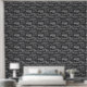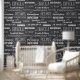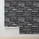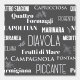 Stilvolle Tapeten aus Holzkohle, grau und weiß, mit typografischen Mustern traditioneller italienischer Pizzabesorten
