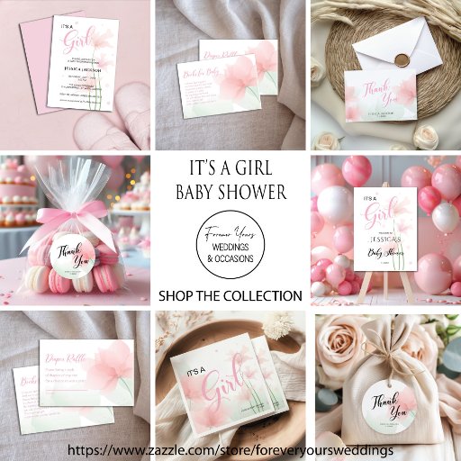 This "It's a Girl" Baby Thank You Card showcases delicate, soft pink flowers. To customize it, simply click on "Personalize This Design" and enter your details; Zazzle will handle the rest. This beautiful card is part of the "It's a Girl" Baby Shower Collection.