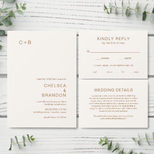Ivory Copper Monogram Modern Wedding CollectionDesignt von Cynthia