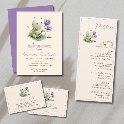 Ivory Cute Caterpillar Custom Baby Shower Menükarte