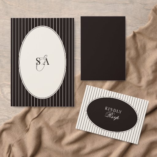 Black and Ivory Stripes Oval Old Money WeddingDesignt von Jen Mercado