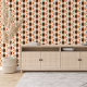 Das Design vereint Bräune, Dunkelbraun, Terracotta-Orange und Elfenbeinfarben in einem Ogee-Wave-Stil. Die Ogee-Kontur ist durchsichtig und erinnert an ein ausgedehntes 'S', das ein lebendiges und rhythmisches visuelle verleiht. Das Muster strahlt Eleganz und Raffinesse aus, mit einer Mischung aus eigenartigen und avantgardistischen Elementen. Es ist sowohl für zeitgenössische Chic- als auch für zeitlose Vintage Ästhetik geeignet, was es für verschiedene Geschmäcker und Persönlichkeiten vielseitig macht. Es bietet eine breite Palette an modernen Wohngestaltungen und ist ideal für alle, die einen besonderen Charakter in Räume wie Master- oder Gästezimmer, Küche, Wohn- oder Familienzimmer, Uni-Studiowohnung, Appartement oder Appartement vermitteln möchten.