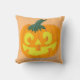 Halloween Dekor mit einem Jack-O’-Lantern Kissen.