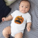 Baby Jersey Bodysuit eines Jacks o' Lantern mit einem breiten Mundwinkel unglücklich ist das Thema dieses Halloween-Orangenkürbis. Entworfen von Sandyspider Geschenke. Alle meine Geschäfte finden Sie unter http://bit.ly/SandyspiderStores