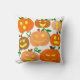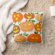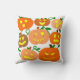 Dieses Kissen hat ein Design von Jack-o-Laternen mit verschiedenen Gesichtern wiederholt in jedem Quartal.