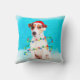 Jack Russell Hund sitzen im Schnee mit Weihnachten Weihnachtsmannmütze Square Pillow.a perfekte Geschenkidee für jemanden, die Liebe dieses Hundes züchten.
