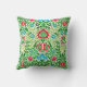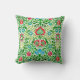 Kissen in einem Vintagen Blumenmuster aus William Morris, digital verstärkt und farbig, in blattgrün, kohlerot und kerulenblau, auf weißem Hintergrund
