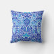 Kissen in einem Vintagen Blumenmuster der William Morris, digital verstärkt und farbig, in Kobaltblau und Türkis auf weißem Hintergrund