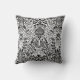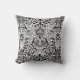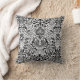 Kissen in einem Vintagen William-Morris-Blumenmuster, digital verstärkt und farbig, schwarz und silbergrau auf weißem Hintergrund