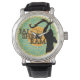 Uhr, Vintage Männeruhr mit schwarzem Lederarmband