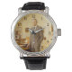 Uhr, Vintage Männeruhr mit schwarzem Lederarmband