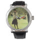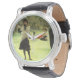 Uhr, Vintage Männeruhr mit schwarzem Lederarmband