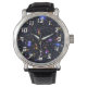 Uhr, Vintage Männeruhr mit schwarzem Lederarmband
