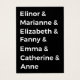 Elinor und Marianne und Elizabeth und Fanny und Emma und Catherine und Anne.