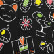 Japanisch Kawaii Kultur Doodles auf schwarz Tapete