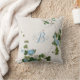 Dieses hübsche Kissen mit Wohngestaltung besticht durch eine zarte japanische botanische Aquarellfarbe aus Stielen mit blauen Blumen. Personalisieren Sie es mit Ihrem eigenen Namen und Initial.