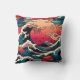 Ein cooles, trendiges, japanisch inspiriertes Kissen mit einer riesigen Ozeanwelle vor dem Hintergrund eines atemberaubenden roten Sonnenuntergangs. Die lebhaften Farben werden jedem Wohnraum Wärme und Drama verleihen. Dieses Kissen wäre ein großartiges Geschenk für jeden, der japanische Kunst liebt.