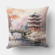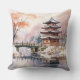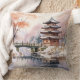 Japanische Sakura Tree Pagode und Bridge Pink Gray Kissen