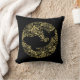 Stilvolles schwarzes Kissen mit einem goldenen und schwarzen Koi-Fisch-Design bedruckt. Schwarze Silhouette auf einem dekorativen Goldkreis.
