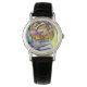 Uhr, Klassische Damenuhr mit schwarzen Lederarmband