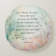 Dieses Aquarelldesign besticht durch delikate Botanicals in sanften Blau-, Grün- und Korallentönen und schafft eine ruhige und verträumte Atmosphäre. Die sanfte Farbmischung verleiht dem Ganzen ein Gefühl von Ruhe und Harmonie. Der inspirierend Bibelverse Jeremiah 29:11 steht im Mittelpunkt dieser Komposition, elegant dargestellt, und erinnert uns an Hoffnung und göttlichen Zweck. Die Wirkung ist insgesamt erfreulich und beruhigend, sodass sie eine perfekte Ergänzung zu jedem Raum ist, der Ermutigung und Gelassenheit braucht. Dieses Kunstwerk erfasst das Wesen von Natur und Glauben auf visuell atemberaubende Weise.