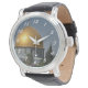 Uhr, Vintage Männeruhr mit schwarzem Lederarmband