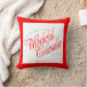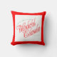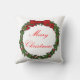 Die Front des Kissens hat eine rote Grenze. In festlichem Rotem und grün, dieses passt 16" x 16" Weihnachtskissen nach rechts herein mit Ihrem regelmäßigen Feiertag décor. Ein die Rückseite haben wir einen traditionellen Stechpalmen-Kranz mit einem roten Bogen und "frohen Weihnachten."