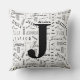 Experience a distinctive typography custom name throw pillow designed for "Jessica" with the monogram J. This gift stands out with its background pattern formed from the letter "J" and its contrasting black, white, and grey hues. It's also easily customized for any name or initial.