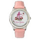Kinderuhr aus Edelstahl mit rosa Lederarmband