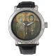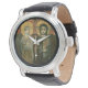Uhr, Vintage Männeruhr mit schwarzem Lederarmband
