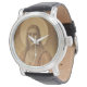 Uhr, Vintage Männeruhr mit schwarzem Lederarmband