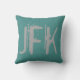JFK- Abkürzung für John F. Kennedy International Airport, New York. Grauer urbaner Text auf aquamarinem Hintergrund