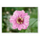 Ein nahes Foto eines rosa Zinnia, mit doppelter rosa Blume mit gelben Sternen.