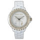 Weiße Damen Email Strassuhr